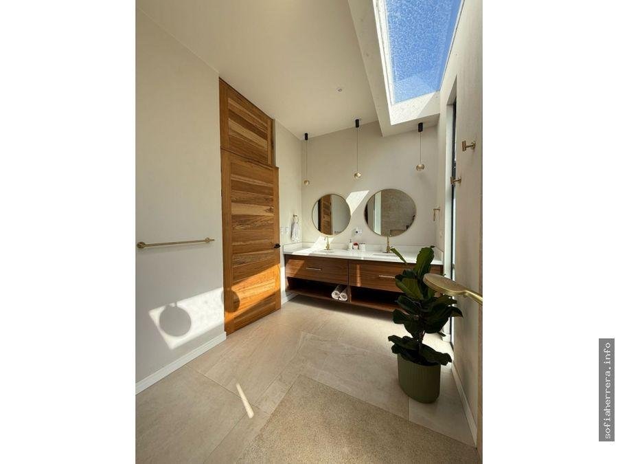 -Habitación principal: Con acceso directo al patio, walking closet, baño privado con doble ducha y un tragaluz para disfrutar de vistas nocturnas a la luna. Además, cuenta con aire acondicionado para mayor confort.