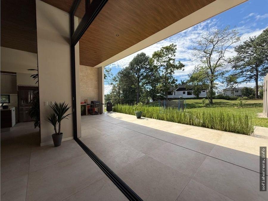 El jardín trasero colinda con uno de las canchas de golf, lo que significa que el cuarto principal y la sala y cocina abierta, siempre tendrá naturaleza.