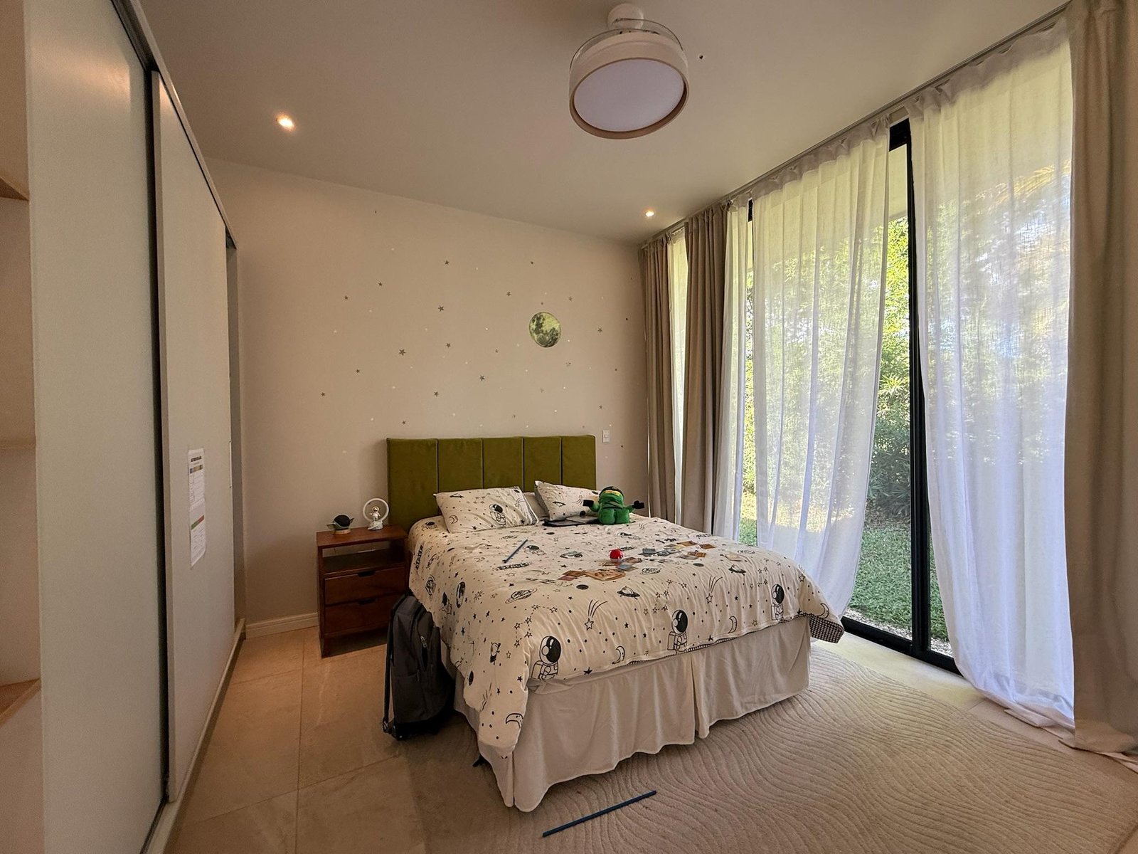Habitaciones secundarias (2 y 3): Amplias y luminosas, con ventanas de piso a techo que permiten una integración perfecta con el jardín. Cuentan con baño completo en suite, muebles empotrados y closets amplios. Además, ambas habitaciones están equipadas con ventiladores de techo integrado en las lámparas.